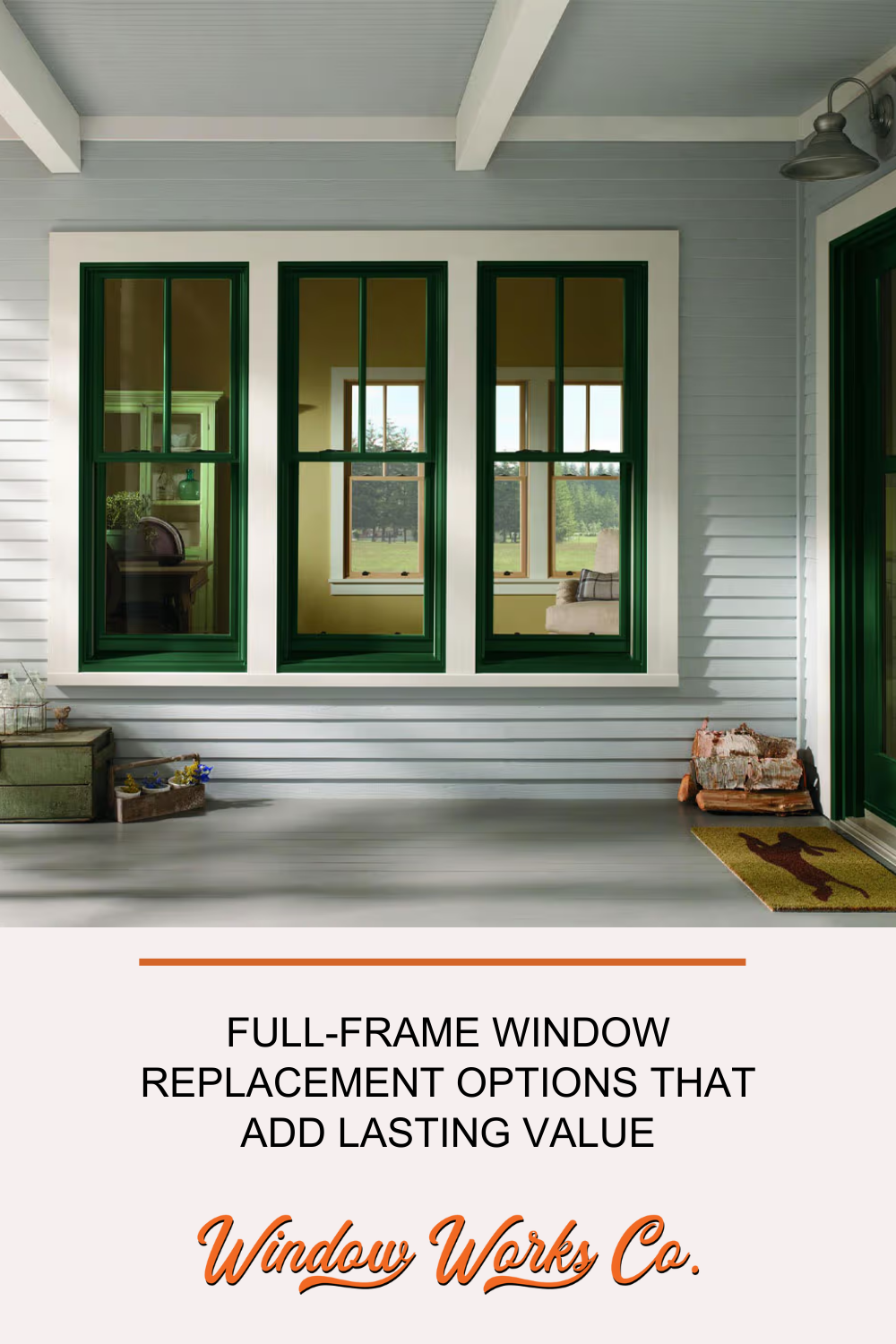 If your home still has its original builder-windows, it may be time for a complete upgrade. Full-frame replacements involve removing the entire window, including interior and exterior trim, and replacing it with a completely new frame and glass system.